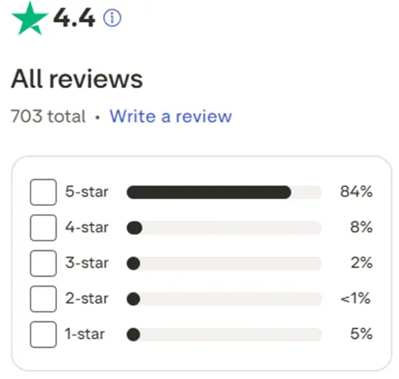 GoMarkets has a rating of 4.4 stars on Trustpilot. Out of the 703 reviews, 84% are 5-stars and only 5% 1-star. Users praise the professional staff for their fast and responsive service. Key highlights include same-day bank transfers, a seamless account setup, and a stable, user-friendly trading platform.